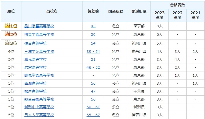 对应的,查minkou上的武藏野音乐大学的生源统计,前十除了伊奈、越谷北、豊南,都有专业音乐科,算下“普通”高中出身占四分之一: